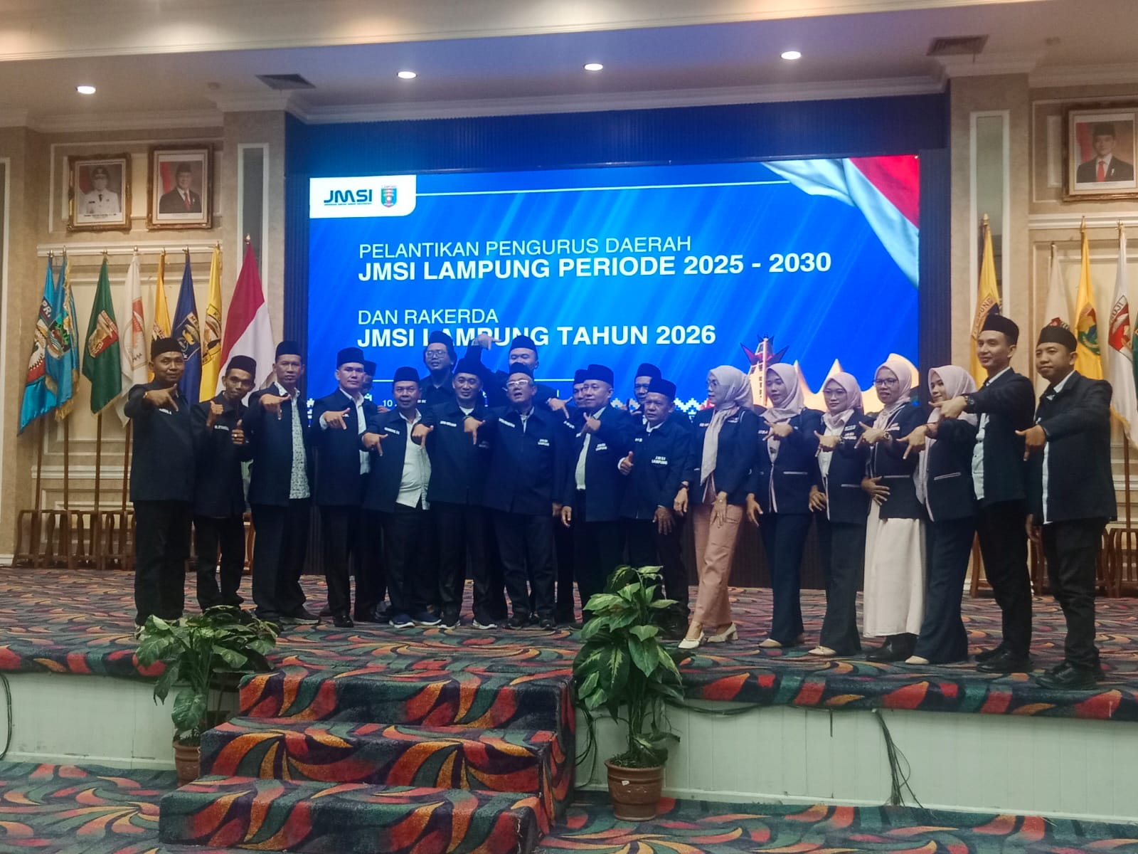 BANDAR LAMPUNG – (SIN) – Ketua Umum JMSI Pusat, DR. Teguh Santosa resmi melantik Pengurus Daerah Jaringan Media Siber Indonesia (JMSI) Lampung periode 2025–2030 yang digelar di Balai Keratun di Balai Keratun Lantai 3 Kantor Gubernur Lampung, Jumat (10/4/2026).