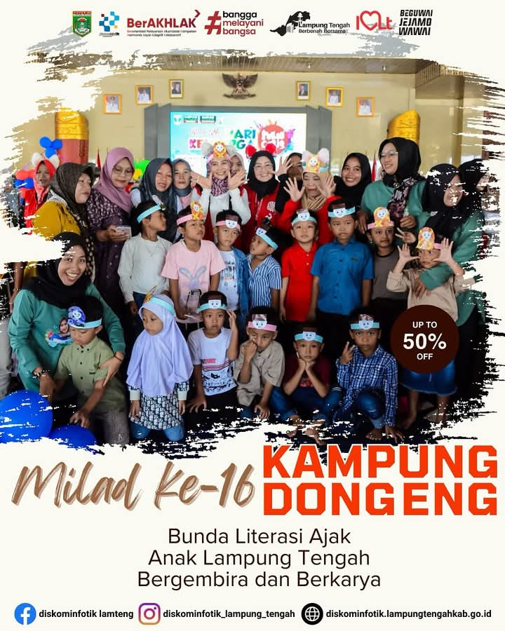 “Melalui satu pesan cerita, kita bisa hebatkan anak Indonesia. Kampung Dongeng Lampung Tengah akan terus menghadirkan dongeng-dongeng inspiratif untuk membangun karakter anak yang cerdas, kreatif, dan berakhlak mulia,” tegasnya.