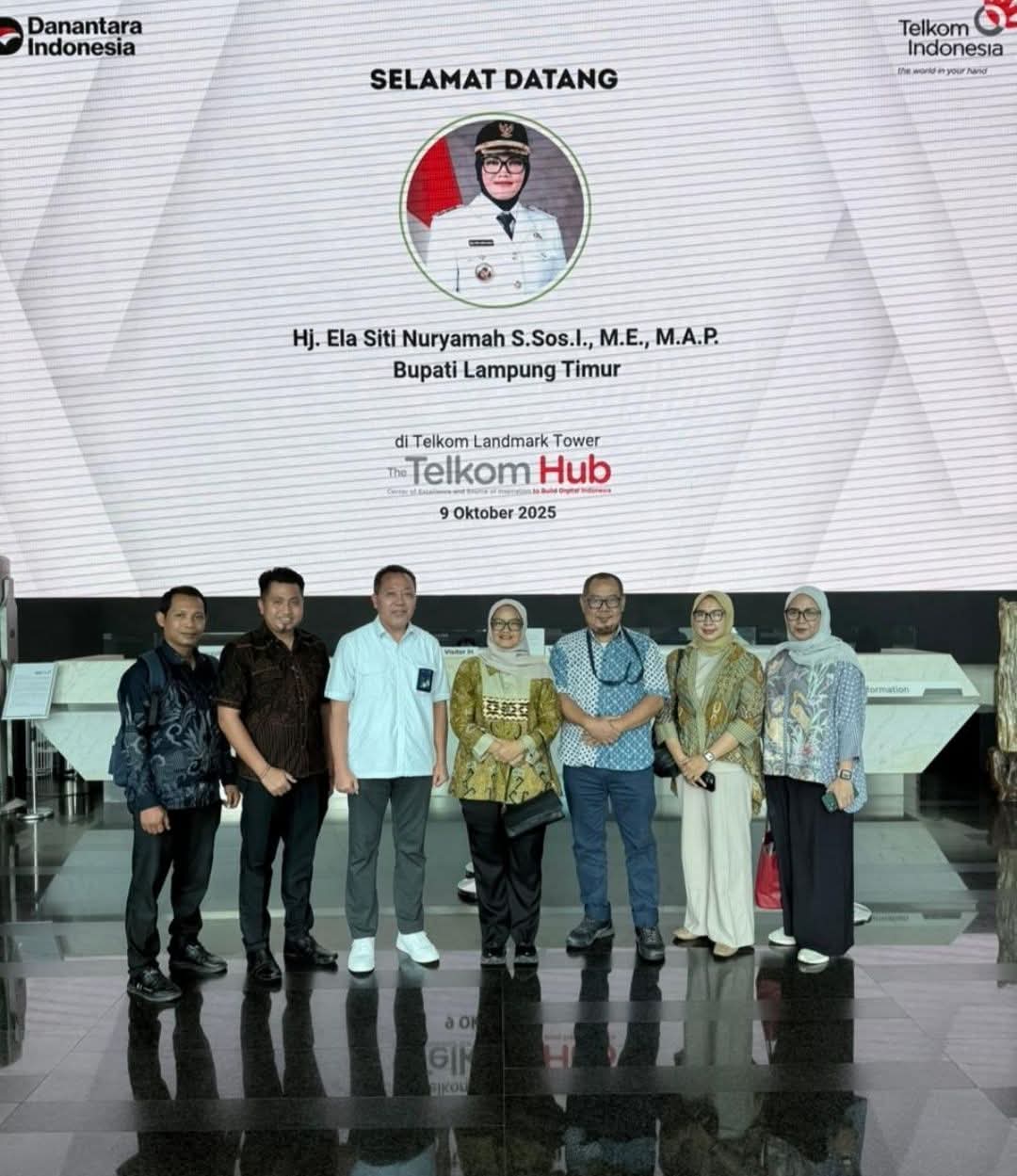 Lampung Timur – (SIN) – Bupati Lampung Timur, Ela Siti Nuryamah, melakukan audiensi dengan PT Telkom Indonesia Tbk di Gedung Telkom Landmark Tower (TLT) lantai 39, Jakarta Selatan, Kamis (9/10/2025).