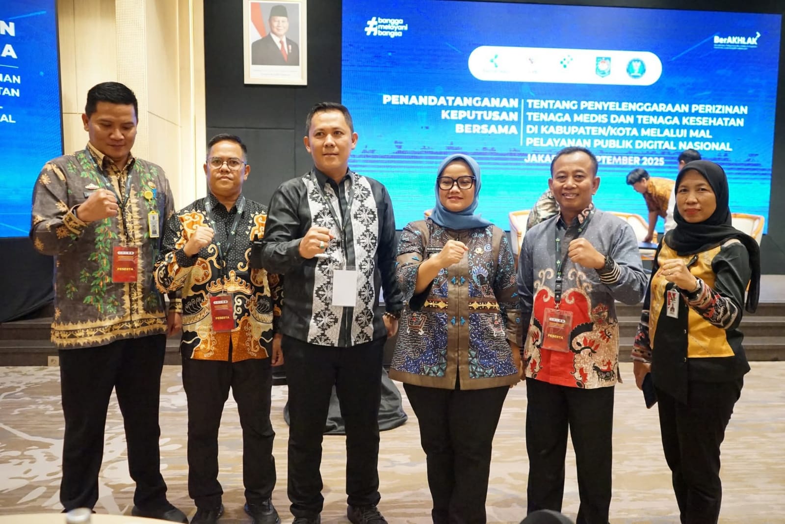 Acara tersebut adalah penandatanganan Keputusan Bersama Lima Menteri dan Kepala Lembaga terkait penyelenggaraan perizinan tenaga medis dan kesehatan di kabupaten/kota melalui Mal Pelayanan Publik (MPP) Digital Nasional.