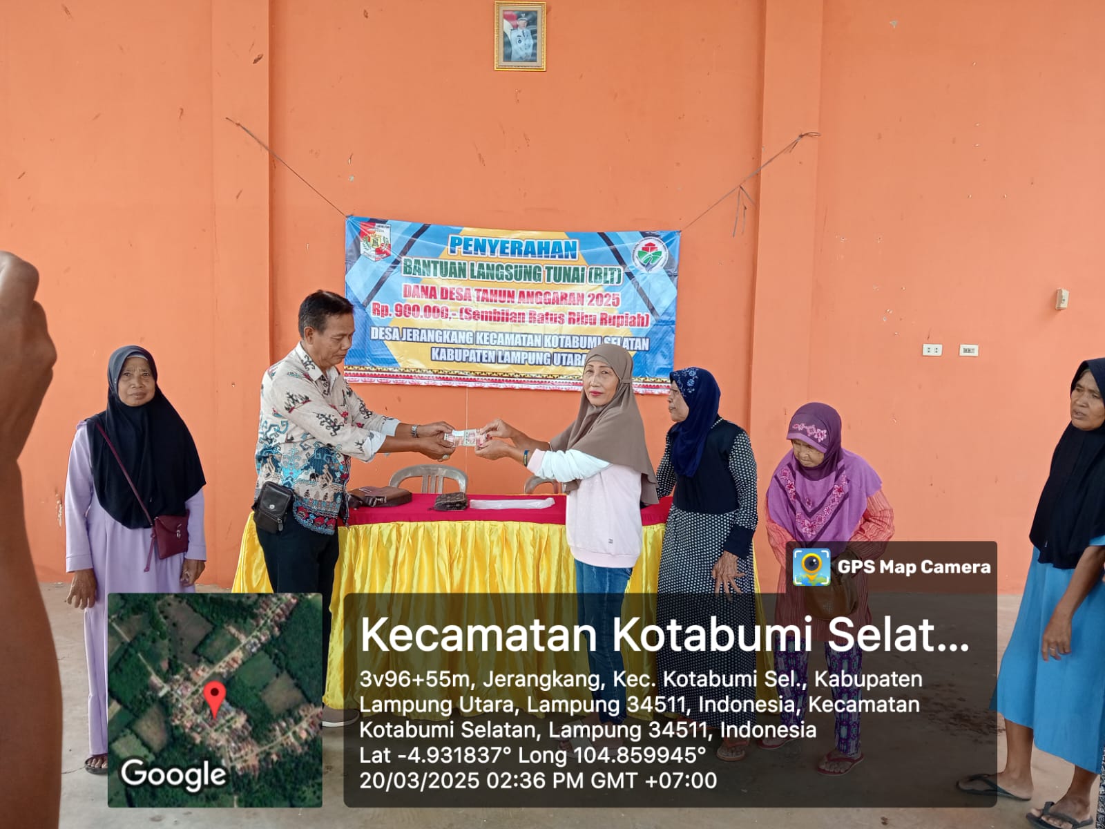 pelaksaan penyerahan bantuan ini di berikan di Gedung Aula Desa Jerangkang yang Langsung di berikan oleh Kepala Desa ( KADES) MISRON kepada 9 keluarga penerima Mampa’at Bantuwan Langsung Tunai Desa ( KPM . BLT Desa) sebesar Rp. 900 000 . – (sembilan Ratus Ribu Rupiah) per penerima Bantuwan .