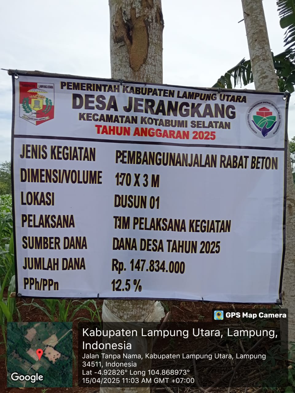 Lampung Utara – (SIN) – Agaran Dana Desa ( ADD) Desa Jerangkang salah satu Desa yang terletak di Kecamatan Kotabumi Selatan Kabupaten Lampung Utara Propinsi Lampung di Tahun Agaran 2024 / 2025 menerima Agaran Dana Desa (ADD) sebesar Rp. 668 . 513 . 000 . – Sesuwai dengan peruntukan nya dan sesuwai dengan Rencana Rancangan Agaran Pendapatan dan belanja Desa ( RAPB Des) Tahun 2025 ini sudah di Realisasi kan sesuwai dengan tahap pertahap.