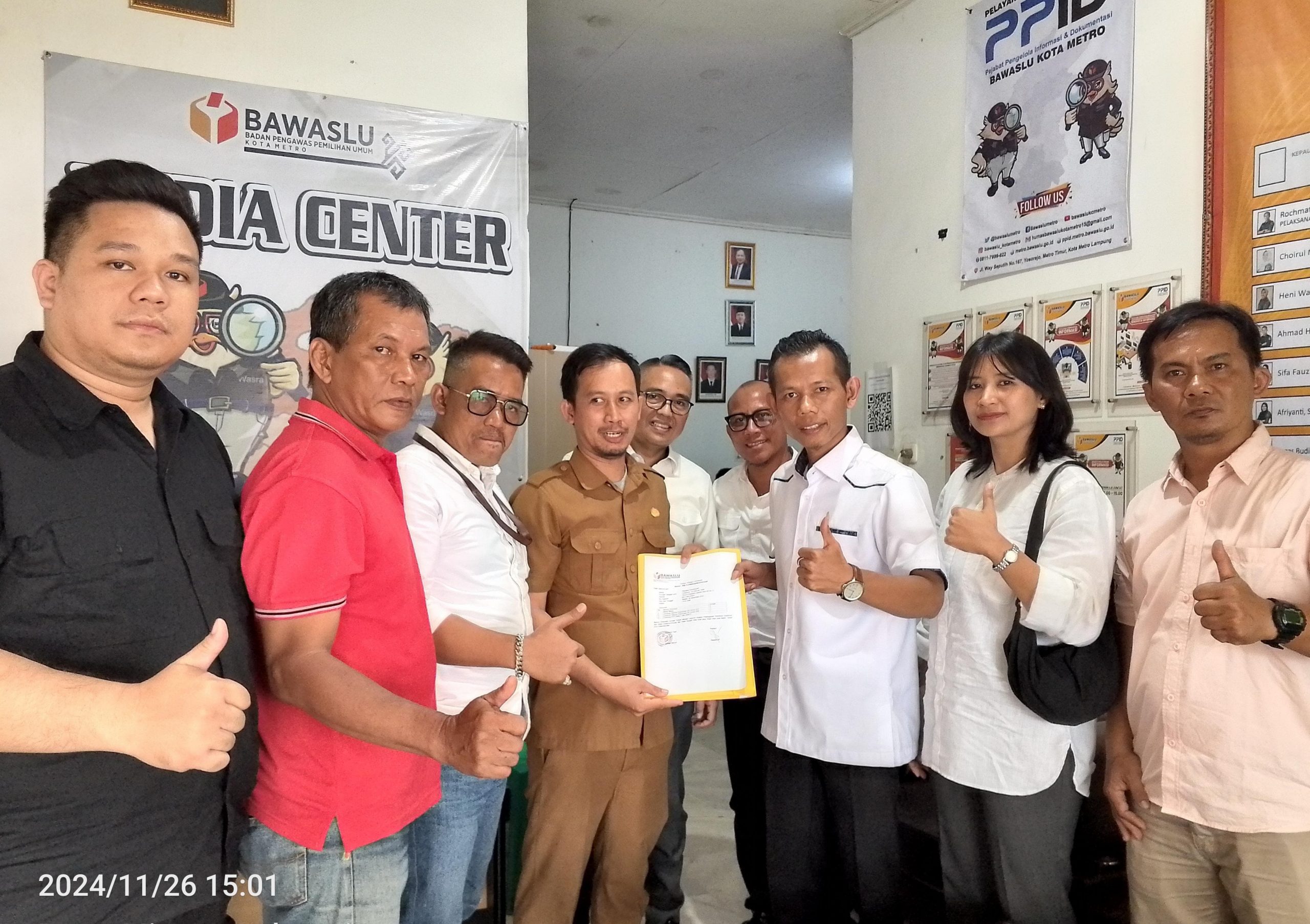 Kota metro – (SIN) – Forum Advokat Peduli Demokrasi (FORKADI) mengadukan lima orang Komisioner KPU Kota Metro Demisioner ke Kantor Bawaslu setempat karna diduga melanggar pidana pemilu saat masih menjabat sebagai Komisioner KPU Metro beberapa hari yang lalu, Selasa (26/11/2024).