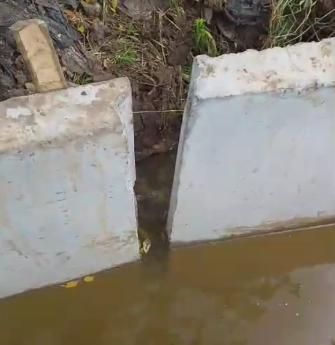 Parahnya lagi sambungan Nat tidak nyingkron renggang dan menganga. Secara Umum pemasangan dasar tata letak sebelum dipasang U–ditch terlebih dahulu digelar pasir Kering serta sambungan Nat harus nyingkron dan rapat, namun janggalnya pekerjaan pemasangan U–ditch dalam keadaan air banjir, pihak pengawas Dinas PUPR Bidang SDA mirip tutup mata, Ada apakah ini ?.