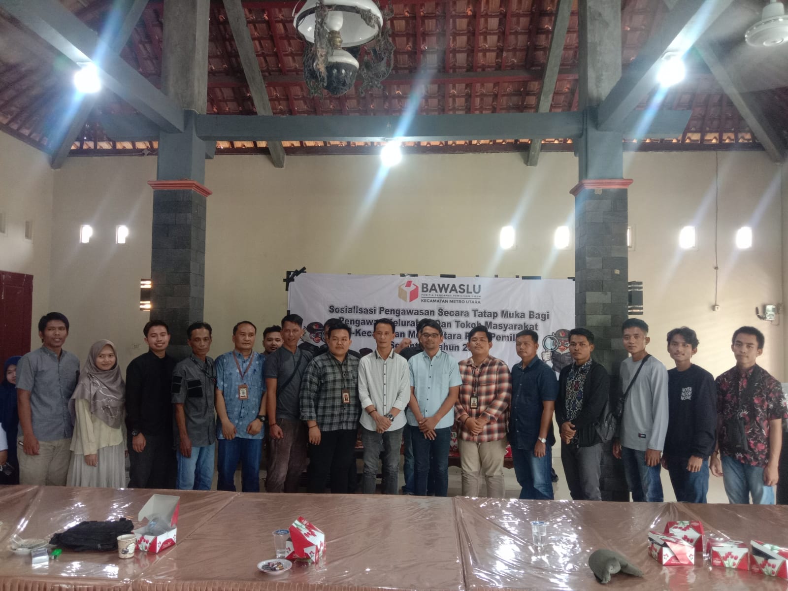 Kota Metro – (SIN) – Badan Pengawas Pemilu melalui Pengawas Pemilihan Kecamatan (Panwascam) Kecamatan Metro Utara menggelar sosialisasi pengawasan secara tatap muka bagi pengawas Kelurahan dan para tokoh masyarakat serta para pemuda, se-Kecamatan Metro Utara, pada pemilihan serentak 2024.
