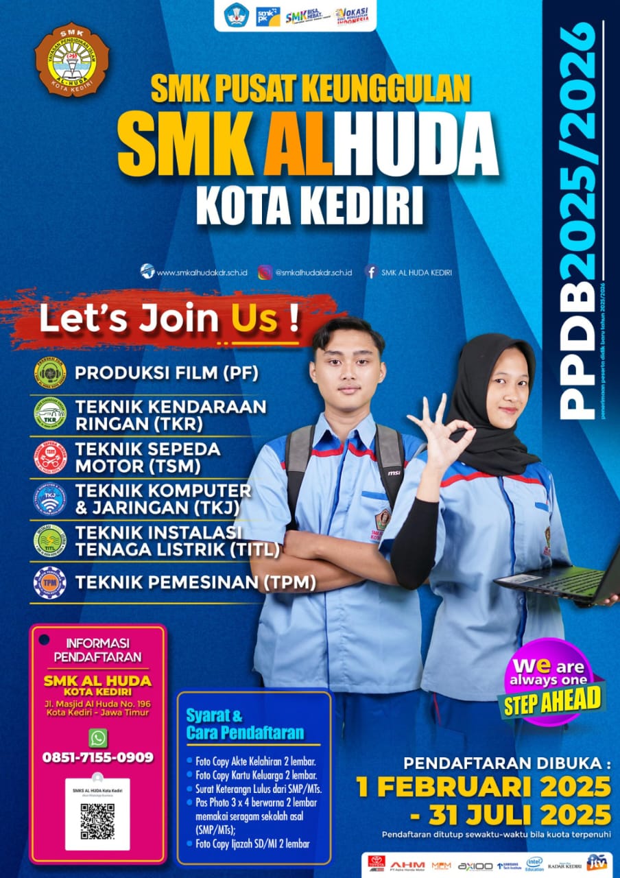 Kediri Jawa Timur – (SIN) – “Kabar gembira”.. Bagi masyarakat Kediri dan sekitarnya, Tahun ajaran baru akan segera dimulai, SMKS AL HUDA KEDIRI mulai membuka rangkaian proses Penerimaan Peserta Didik Baru (PPDB) tahun ajaran 2025/2026. SMKS AL HUDA KEDIRI adalah pilihan tepat bagi calon peserta didik yang ingin melanjutkan pendidikan sesuai dengan minat dan bakatnya.