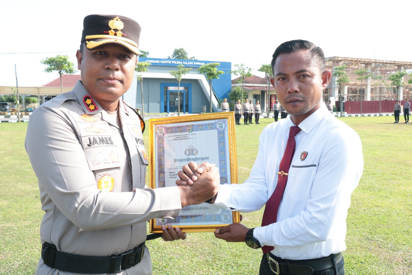 “Hari ini, saya memimpin langsung upacara pemberian reward (penghargaan) kepada 11 (sebelas) personel Satuan Reserse Narkoba (Satresnarkoba) Polres Tulang Bawang yang telah mengungkap kasus penyalahgunaan dan peredaran gelap narkoba jenis sabu seberat 101,12 (seratus satu koma dua belas) gram,” kata perwira peraih Adhi Makayasa Akpol 2004.