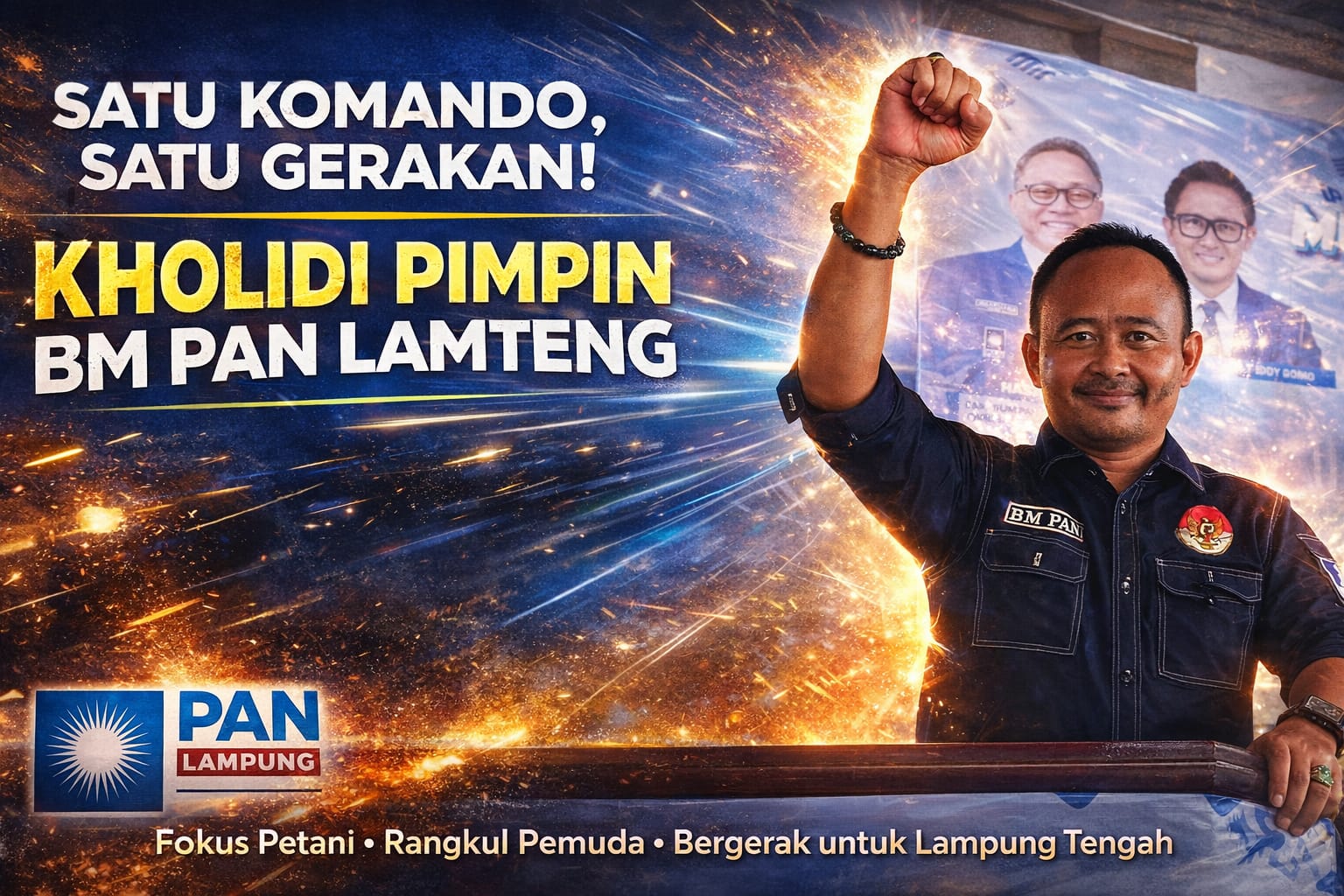 LAMTENG – (SIN) – Kholidi kembali dipercaya memimpin Barisan Muda (BM) Partai Amanat Nasional (PAN) Lampung Tengah untuk periode 2026–2030. Ia menegaskan komitmennya untuk membawa organisasi sayap partai tersebut lebih aktif dan berdampak langsung di tengah masyarakat.