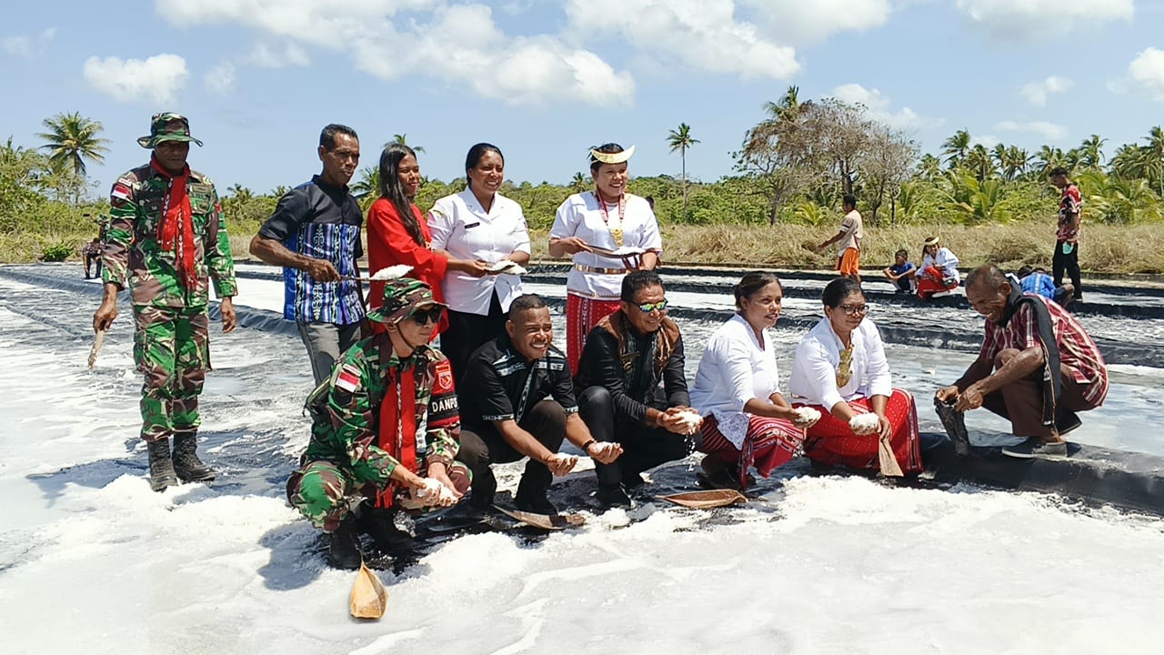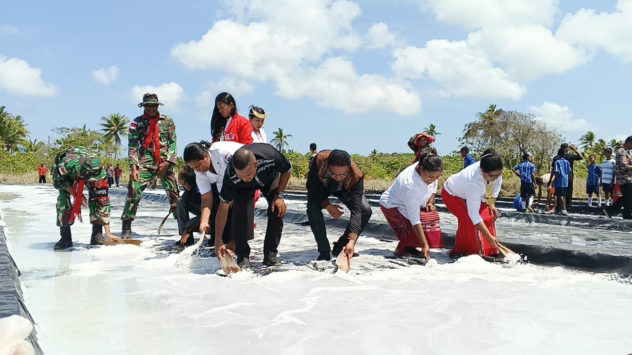 Kemudian pada 2025 ini kami mencoba menganggarkan melalui Dana Desa dengan nilai Rp.16 juta untuk pembelian meja pengeringan garam sebanyak 6 unit dengan masing masing ukuran 35mx3,5m, dan kita sudah gunakan untuk pengeringan garam dan hasilnya boleh dipanen pada tanggal 04/10/2025 lalu, bertepatan dengan hari Ulang Tahun Kabupaten Kepulauan Tanimbar,ucapnya.