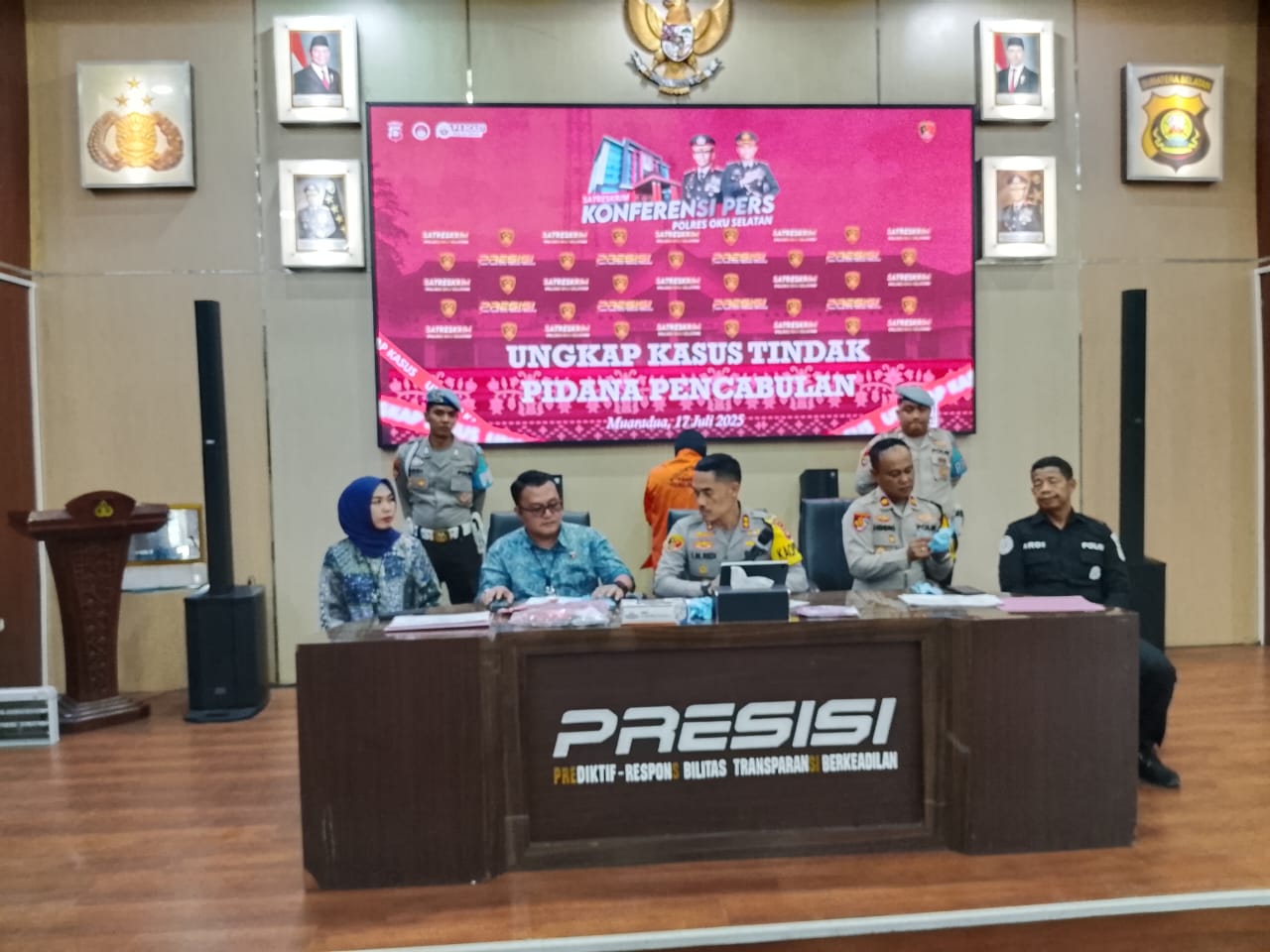 “Pelaku telah kita amankan, akibat perbuatannya pelaku di jerat pasal 82 ayat(1) Undang-undang No. 17 tahun 2016 atas perubahan Undang-undang No. 23 tahun 2002 tentang perlindungan anak atau Jo. Pasal pasal 15 ayat(1) Undang-undang No.12 tahun 2022 tentang tindak pidana kekerasan seksual dengan ancaman hukuman 15 tahun penjara dan denda 5 Milyar Rupiah”, Ungkap Kapolres OKUS AKBP I Made Redi Hartana saat pimpin press release,Kamis(17/7/25).