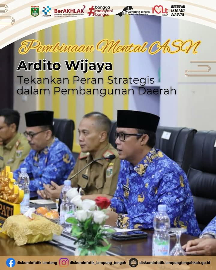 Lampung Tengah – (SIN) – Bupati Ardito Wijaya menghadiri kegiatan Pembinaan Mental dan Spiritual ASN/Anggota Korpri Kabupaten Lampung Tengah yang dilaksanakan secara daring, bertempat di Ruang Subing, Kantor Bupati Lampung Tengah. Senin (19/5/2025).