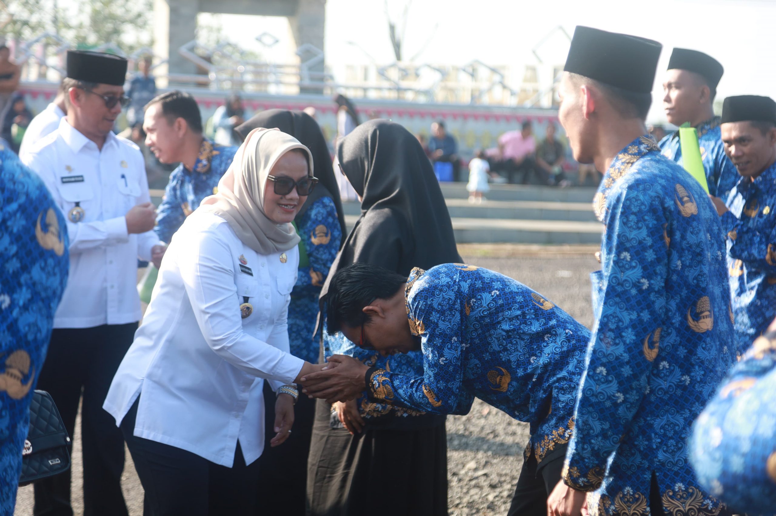 “Kenapa kami lakukan di halaman? Karena di luar ruangan bisa lebih menikmati udara segar, semoga ini menjadi awal yang baik bagi kalian semua,” ujar Bupati disambut tepuk tangan para peserta.