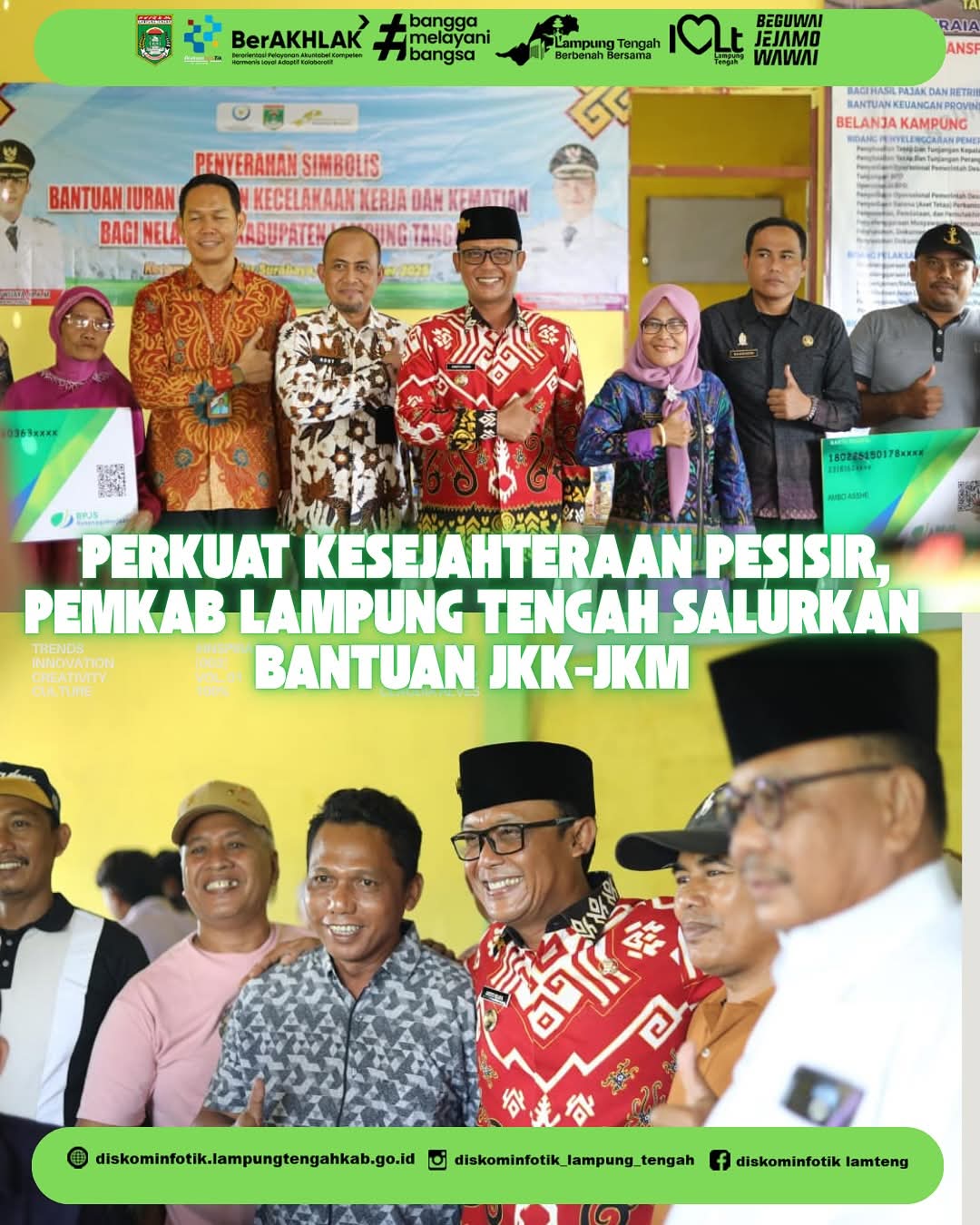 Penyerahan bantuan tersebut merupakan bentuk komitmen Pemerintah Kabupaten Lampung Tengah dalam memberikan perlindungan sosial bagi para nelayan yang sehari-hari menghadapi risiko tinggi saat bekerja di perairan. Melalui program ini, nelayan memperoleh jaminan terhadap kecelakaan saat melaut maupun perlindungan keluarga apabila terjadi risiko terburuk.