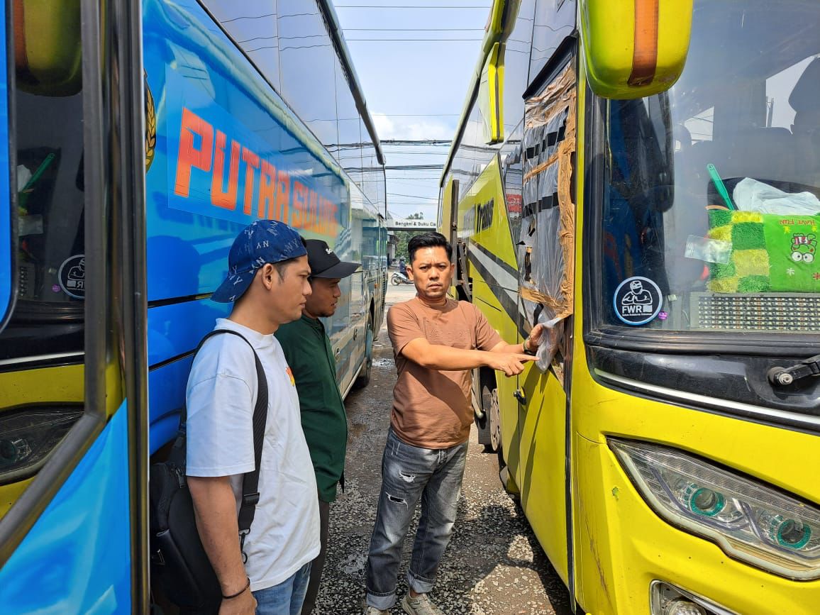 Lampung Tengah – (SIN) – Polsek Terbanggi Besar bersama Unit Kamneg Polda Lampung melakukan penyelidikan dan pengecekan Tempat Kejadian Perkara (TKP) terkait video viral yang tersebar di media sosial TikTok, Instagram, Snack Video, dan Facebook mengenai insiden pecah kaca sebuah bus pariwisata di wilayah hukum Polsek Terbanggi Besar.
