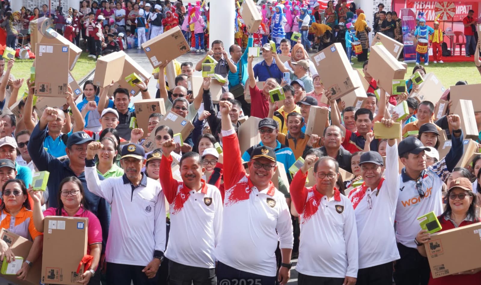 Kota Gunungsitoli – Sumatera Utara – (SIN) – Sebagai bentuk komitmen dalam meningkatkan kualitas pendidikan dan memperkuat kapasitas tenaga pendidik di era digital, Wali Kota Gunungsitoli, Sowa’a Laoli, S.E., M.Si didampingi Wakil Wali Kota Gunungsitoli Martinus Lase, S. H secara simbolis menyerahkan laptop kepada para guru dalam program “One Teacher One Laptop” bertempat di Alun-alun Kota Gunungsitoli, Rabu (7/8/2025).