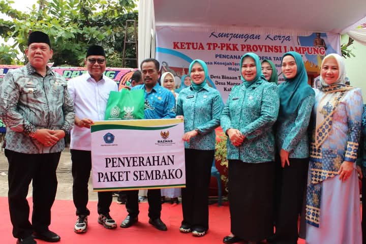 Lampung Timur – (SIN) – Ketua TP PKK Provinsi Lampung, Purnama Wulan Sari Mirza, melakukan kunjungan kerja untuk pencanangan Desa TAPIS (Desa Kesejahteraan Keluarga untuk Lampung Maju Indonesia Emas) di Kabupaten Lampung Timur yang diselenggarakan bertempat di Desa Marga Jaya Kecamatan Metro Kibang Lampung Timur, Kamis 7 Agustus 2025.