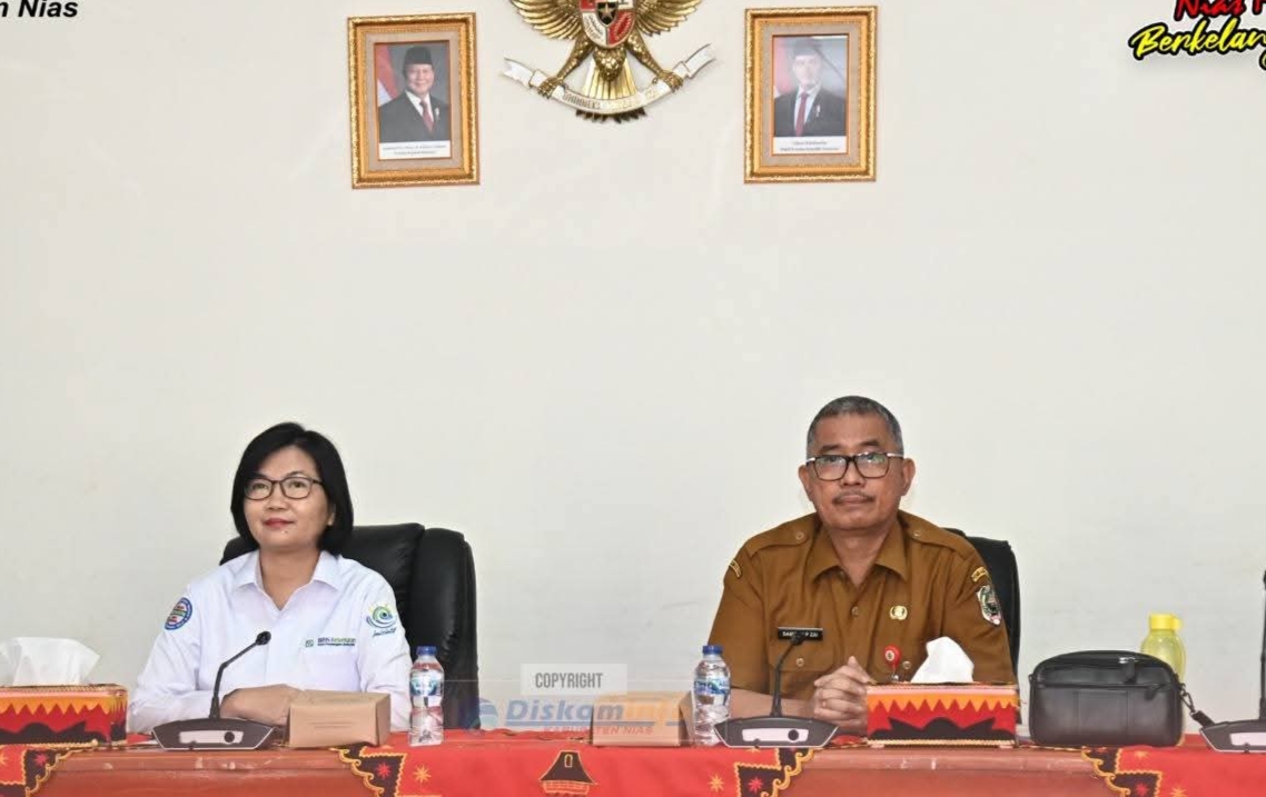 Nias – Sumatera Utara – (SIN) – Rapat Forum Komunikasi Kabupaten Nias Semester I Tahun 2025, dalam rangka membahas hal-hal yang terkait dengan cakupan kepesertaan JKN, Monitoring dan Evaluasi Pelayanan Kesehatan serta Rencana Strategis Pelaksanaan Program JKN Tahun 2025 di Kabupaten Nias, bertempat di Aula Gido Lantai III Kantor Bupati Nias, Senin (7/7/2025).