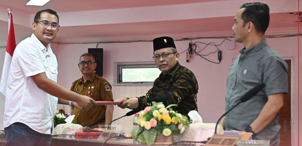 Nias – Sumatera Utara – (SIN) – Sekretaris Daerah Kabupaten Nias, Samson P. Zai, S.H., M.H menghadiri Rapat Paripurna dalam rangka Penyampaian Pandangan Umum Fraksi-fraksi DPRD Kabupaten Nias atas Nota Keuangan Ranperda Tentang Perubahan APBD Tahun Anggaran 2025. Rapat Paripurna yang berlangsung di Ruang Rapat Paripurna Kantor DPRD Kabupaten Nias dipimpin langsung oleh Ketua DPRD Kabupaten Nias, Sabayuti Gulo, S.E. bertempat di Ruang Rapat Lantai II DPRD kabupaten Nias, Senin (4/8/2025).