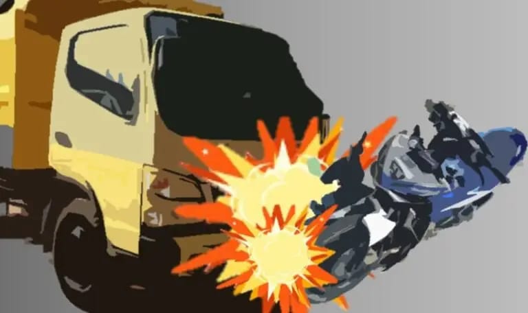 Sebuah truk keluar dari area perusahaan tanpa pengawalan security dan menyebabkan kecelakaan lalu lintas yang melibatkan seorang pengendara sepeda motor.