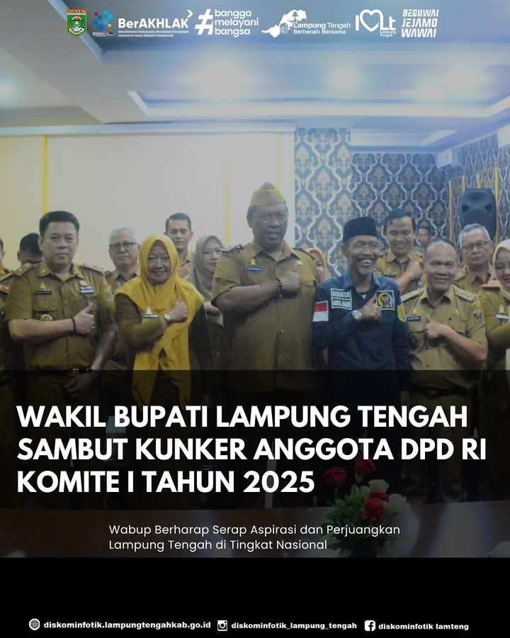 Lampung Tengah – (SIN) – Anggota Dewan Perwakilan Daerah (DPD) Republik Indonesia dari Komite I, Abdul Hakim, melaksanakan kunjungan kerja (kunker) ke Pemerintah Kabupaten Lampung Tengah pada Senin (26/5/2025). Kegiatan tersebut berlangsung di Ruang Subing, Kantor Bupati Lampung Tengah.